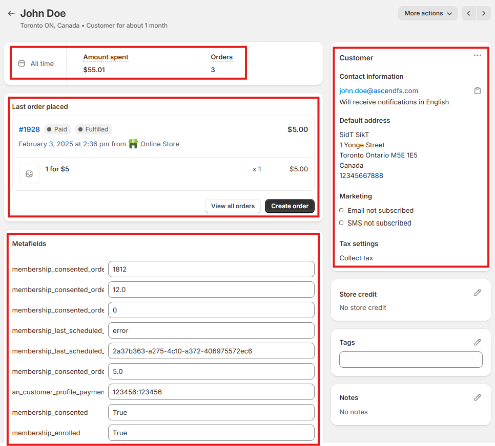 - View Email and SMS marketing preferences for this customer.