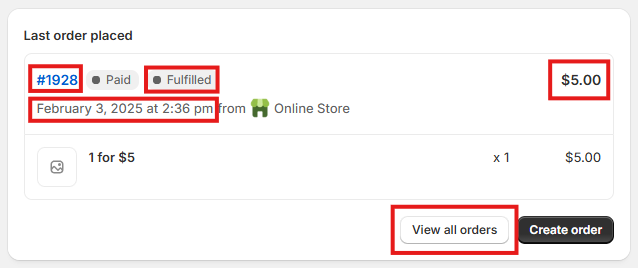 Last order placed