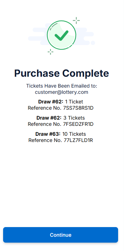 - The seller can select Yes, let’s do it which navigates them back to the home screen where they can select other draws which the customer wishes to purchase tickets for.