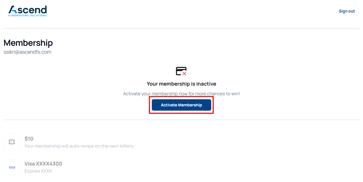1. User can select Activate Membership to activate the membership and view membership details on the main account page.
