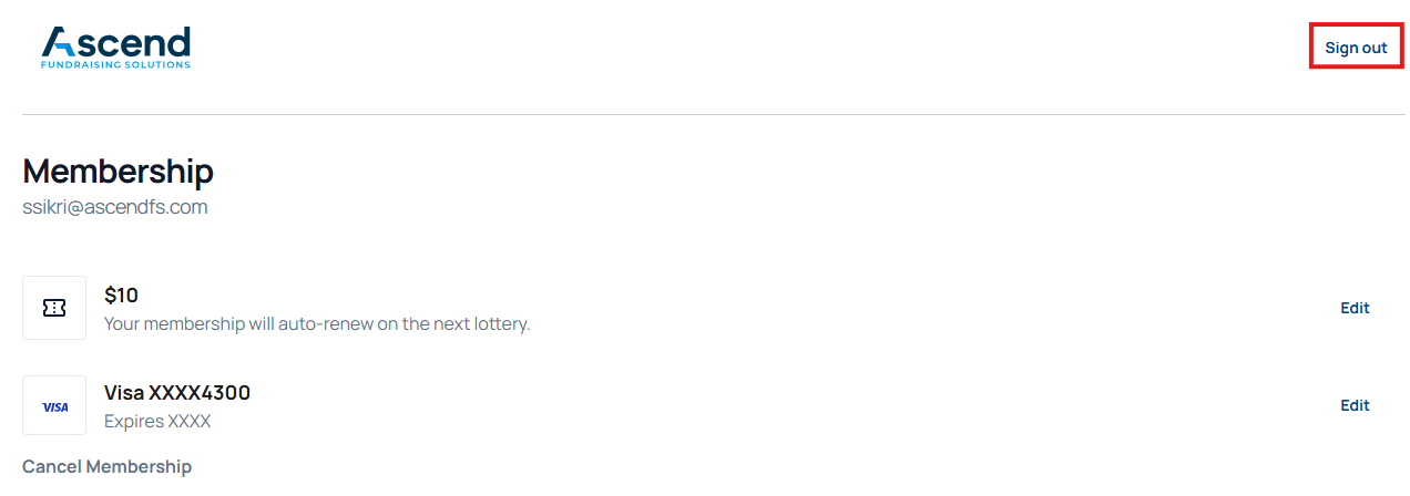 1. User can select Sign out on the top right corner of the page to logout.