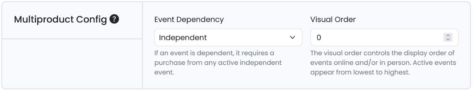 If you do not intend to operate multiple events simultaneously, leave the Multi-Product Config settings as the defaults: