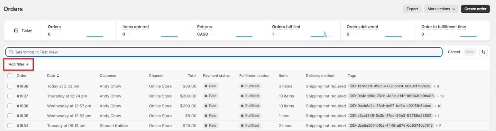 This article gives a general overview of how to create views to filter Orders on Shopify.